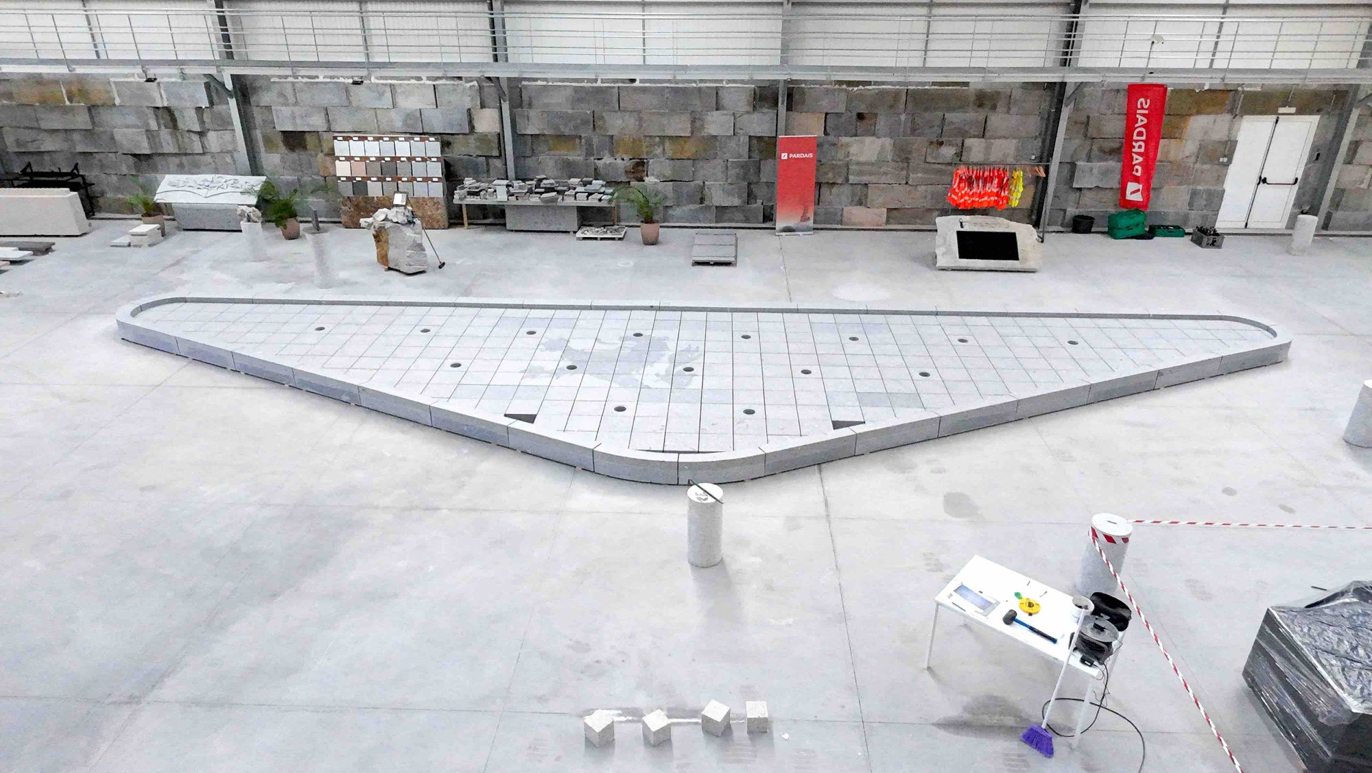 PARDAIS operates a dedicated pre-assembly pavilion where full façade panels, stair flights and complex stone assemblies are dry-fitted at real scale.