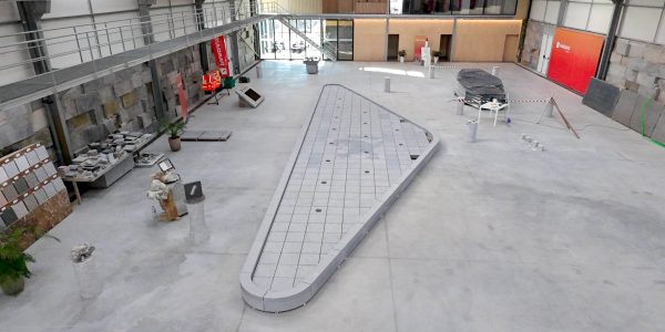 Large granite slabs in a triangular shape with low metric tolerance.
